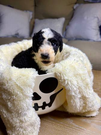 I have 3 female Poodle/Old English Sheepdog puppies I am rehoming. They have been to the vet and had shots and dewormed.